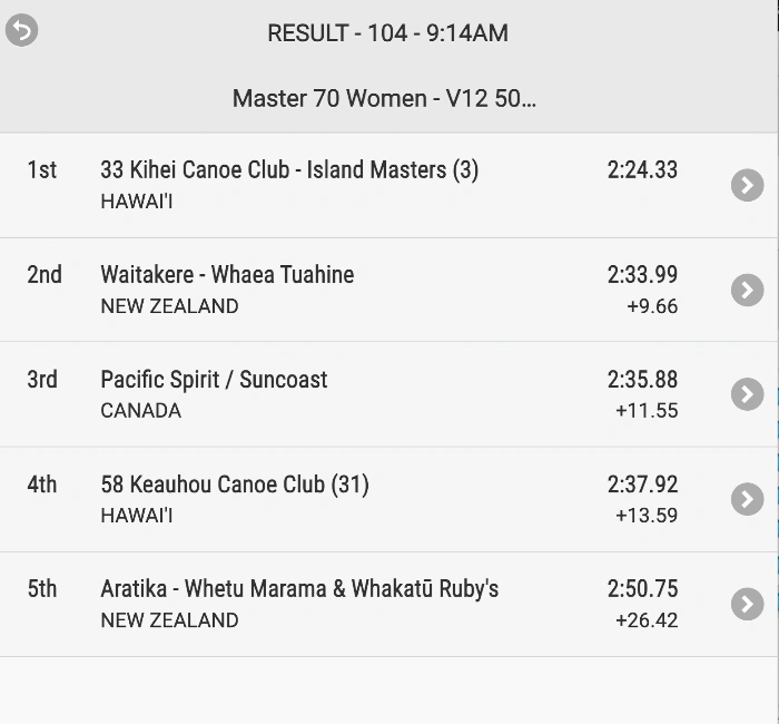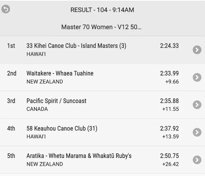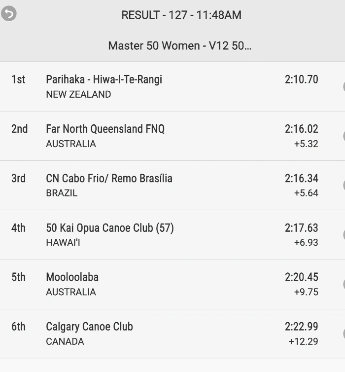 We had the tide behind us, calm water and a quiet waka. Penny was really clear with the crew that she needed quiet so she could hear the caller and seat one. We came in fifth (out of 5 waka) and thought our chances of getting into the final were over. Our time was 2mins 50secs which is quite good. However, there were two heats. In the second heat there were 4 waka. The one that came in first was DQ’d as it started out of lane, paddled out of lane and finished out of lane. That left 3 others. We found out about an hour after the race that we have a place in the final. The Aratika crew were over the moon. You never can tell how things will pan out.
