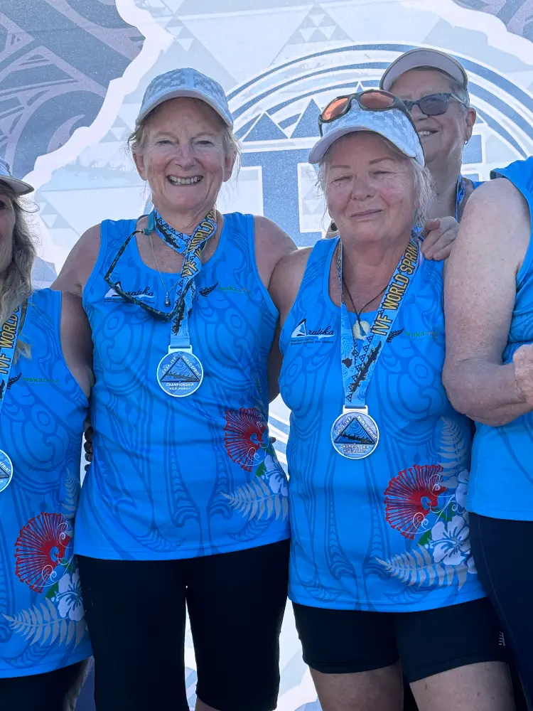 And sometimes you put in all the mahi and just get the thrill of racing on the world stage. Our own master women 70 W12 race didn’t quite go as planned. We had a great start and a good strong paddle but were slightly off course. I still came off with a grin on my face for the joy of just being out there.